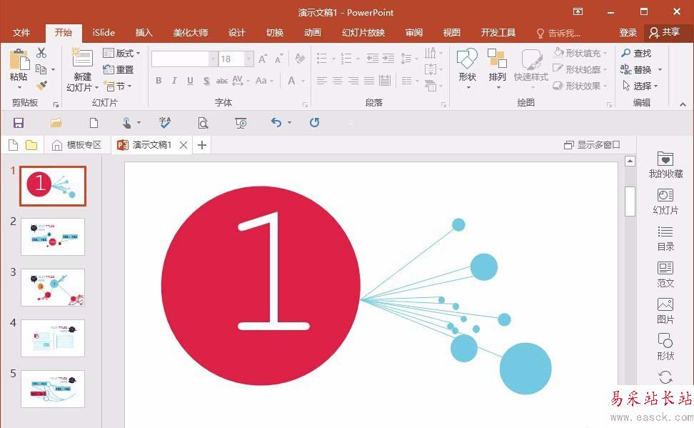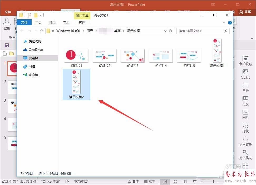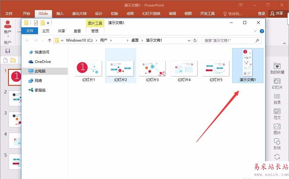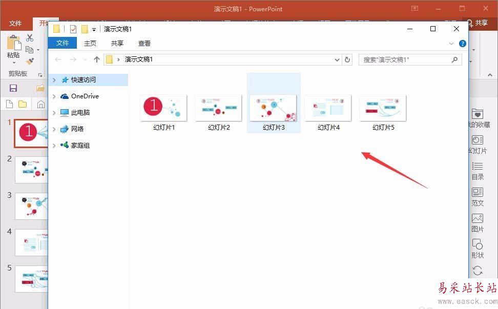 1、比如先隨便找個ppt幻燈片,這里我們需要把這5個,做成一個長圖片,先用比較常規的方法,以2016版本舉例,操作方法為
