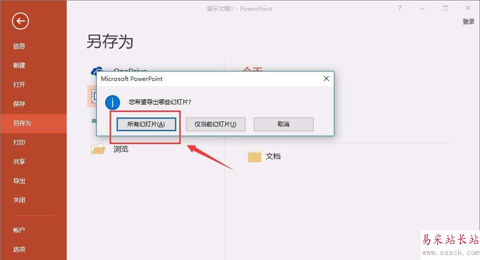 2、選擇另存為jpeg格式,如果是想要所有幻燈片,就選擇全部,也可以部分選擇,導出之后,就成了每一張圖片,然后用圖片處理工具,Photoshop等等來處理成長圖片。