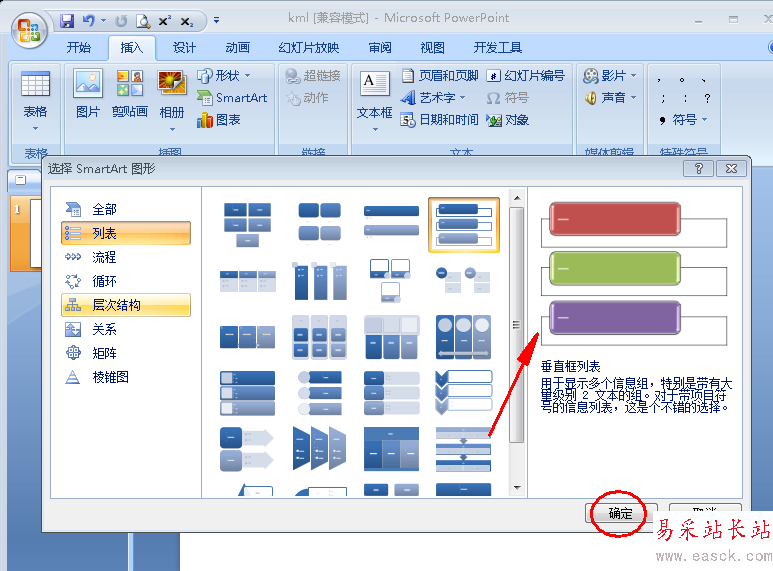 3、接下來會彈出選擇SmartArt圖形的對話框(如圖);