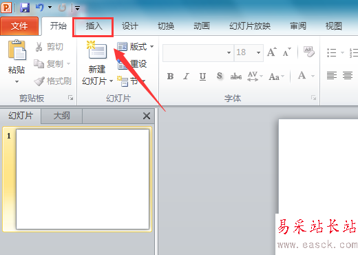 2、打開PPT之后,在菜單里找到插入選項,如圖所示: