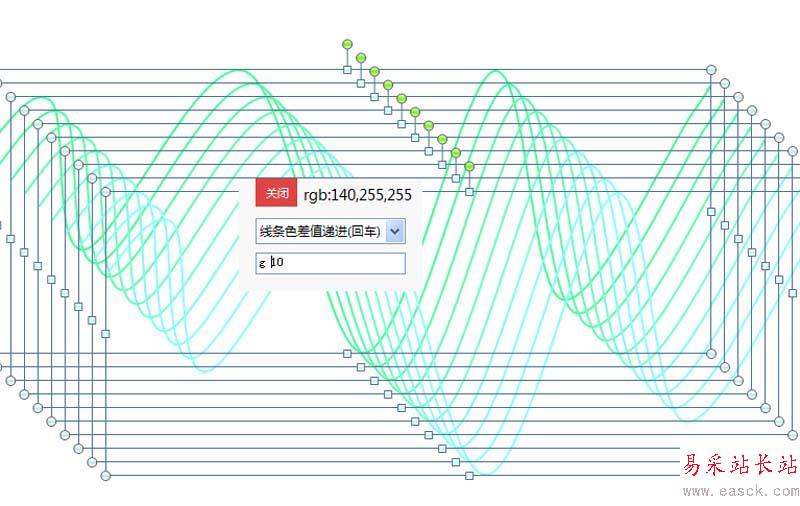 3、執(zhí)行ctrl+a組合鍵全選,執(zhí)行onekey-ok神框命令,從中選擇線條色差遞進選項,設(shè)置參數(shù)為g 10,按回車鍵。