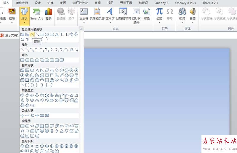 2、執行插入-形狀命令,從中選擇直線并繪制直線,調整執行的長度。