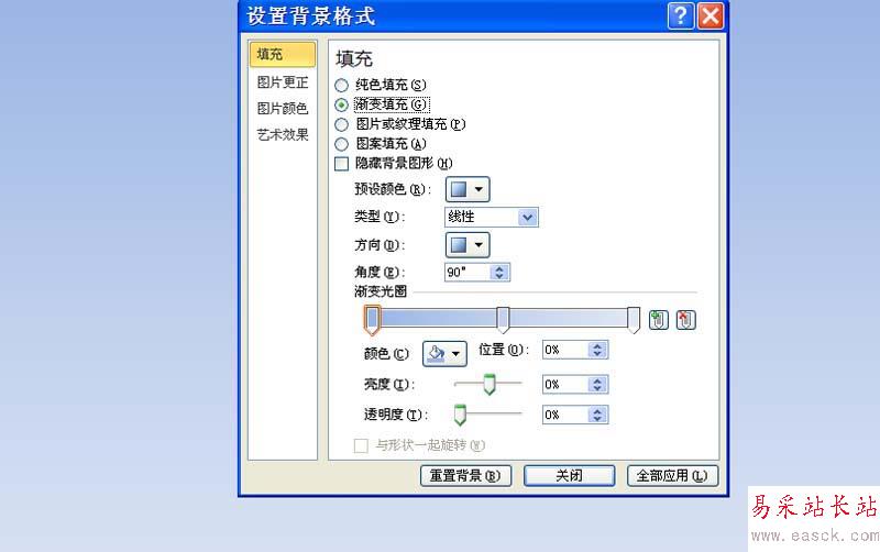 1、首先啟動ppt2010,右鍵單擊選擇設置背景格式選項,設置為漸變填充。