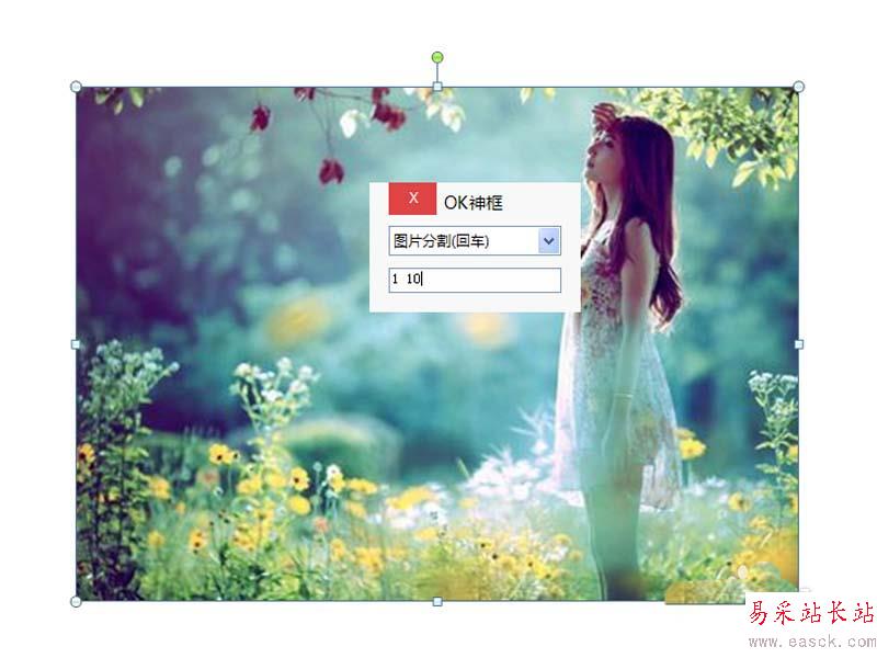 2、選擇圖片,執(zhí)行onekey-ok神框命令,選擇圖片分割,設(shè)置參數(shù)為1空格10,按回車鍵。