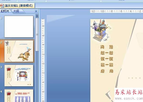 7、除了第一張幻燈片是空白幻燈片外,其余的都是剛剛導(dǎo)入的幻燈片,如果第一張不需要,可以刪除掉。