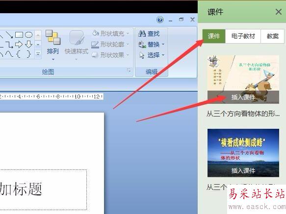 6、系統(tǒng)要一些現(xiàn)成的資源可以直接導(dǎo)入使用,比如說(shuō)課件,還有參考資源比如教案和電子教材。單擊插入可以導(dǎo)入課件。