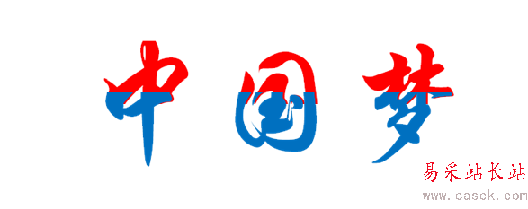 8、最后,把“中國夢”上下兩部分通過微移重合,然后組合,就可以得到最終的“一字雙色”效果了。