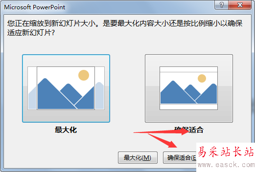 2、在彈出來的對話框中-“幻燈片大小”下拉選擇A4紙張。注意方向選擇“縱向”。然后選擇確保合適。