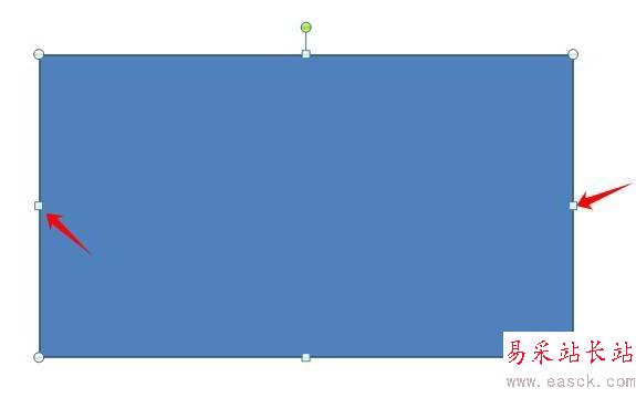 選中要調整的圖形,鼠標放到圖形左邊線或是右邊線小矩形框的位置,待鼠標變成雙向箭頭符號后按住鼠標左鍵不放,向外或是向內拉動圖形,實現圖形寬度的調整。