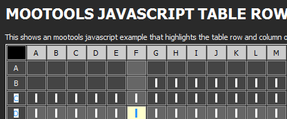利用mootools 框架高亮顯示鼠標懸停的單元格所在的行和列。