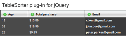 sortable table ——演示了如何按升序或降序排列以及如何過濾顯示表格中的數據。