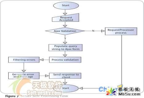 當服務器接收請求時,它就開始檢查AJAX校驗的參數并且進行校驗。一旦完成校驗,生成的對象就被過濾到與用戶輸入對象相聯系的特定的錯誤中。在過濾操作完成后,即刻生成XML消息并把該消息發送回客戶端(見圖7)。