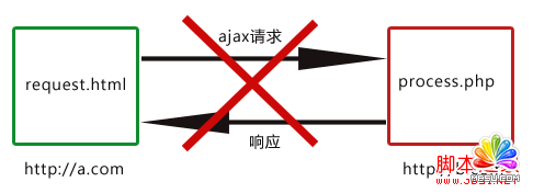 要實現域a.com的request.html請求域b.com的process.php,可以將請求的參數通過URL傳給response.html,由response.html向process.php發出真正的ajax請求(response.html與process.php都屬于域b.com),然后將返回的結果通過URL傳給proxy.html,最后由于proxy.html與request.html是在同一域下,所以可以在proxy.html利用window.top將結果返回給request.html完成跨域通信。