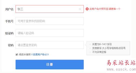 注冊(cè)新用戶的重名提示