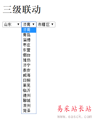 三個菜單是聯(lián)動的,也就是根據省的不同可以有不同的選項