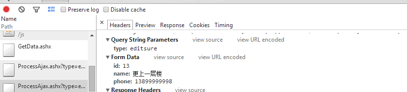 XMLHttpRequest.setRequestHeader("Content-Type", "application/x-www-form-urlencoded");否則的話后臺是不能接收到傳過去的值的。因為在谷歌瀏覽器的編譯器中顯示,傳值在Request Payload中,這是錯誤的(如圖) --屬性注意看