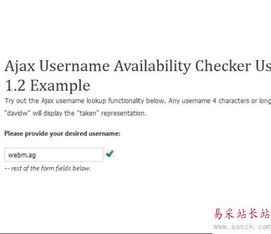 9、使用MooTools 1.2創建用戶名是否可用的檢驗器(http://davidwalsh.name/ajax-username-availability-checker-mootools)