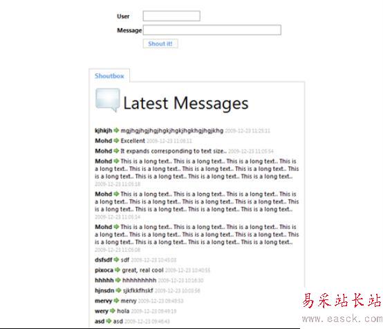 7、使用PHP和Ajax(jQuery)創建一個聊天室(http://yensdesign.com/2009/01/create-a-shoutbox-using-php-and-ajax-jquery)