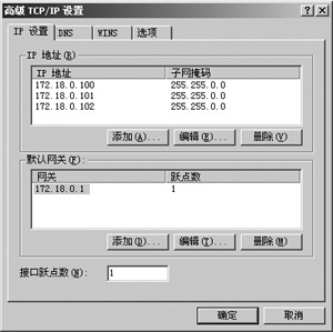 要實現一臺服務器有多個IP地址,你需要先為服務器添加多個IP地址,這就要改變網卡的TCP/IP設置。具體方法是:點擊開始/設置/網絡和撥號連接/本地連接/屬性,選擇“Internet協議(TCP/IP)”,并點擊“屬性”按鈕,在出現的“Internet協議(TCP/IP)屬性”窗口中點擊“高級”按鈕,在這里就可以通過“添加”按鈕為一塊網卡設置多個IP地址,如圖3所示。