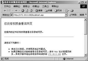 此時,如果鍵入“172.18.0.100”,就會出現讓你輸入驗證用戶和密碼提示窗口,如果單擊確定后,會出現如圖2所示的“您無權查看該網頁”的錯誤。只有輸入了“172.18.0.100:8080”,這個端口對應的網站才會顯示出來。
