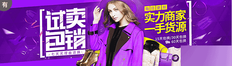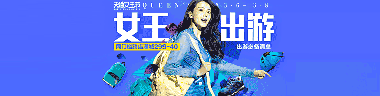最重要的就是配色了,顏色盡量不要超過三種。模特或產品的顏色不要和背景顏色跳躍太大,列如上面的案例背景是藍色,那么其它的顏色可以是青色、紫色、黃色搭配起來會比較舒適。可能你會說黃色和藍色相隔那么遠,黃色是和任何顏色都可以很好的搭配的,所以你會看到官方的Banner圖中出現黃色的利益點、小色塊。