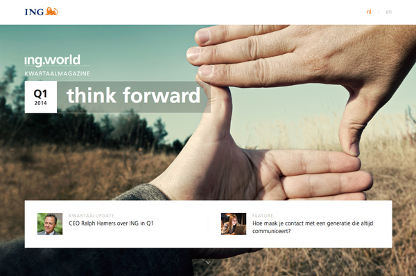 思考這些媒介怎樣融合。不久前,視頻還是電視或YouTube上的東西。如今視頻就作為網站背景,成為了一項潮流元素。各種網站里彈出更多動畫效果,頻繁地融合或替代視覺差滾動效果。