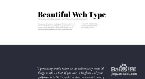 如果你是做字體設(shè)計的,或者你的排版技術(shù)不是很理想,那么,http://hellohappy.org/beautiful-web-type/,這個網(wǎng)站字體設(shè)計與排版參考,是不錯的選擇。