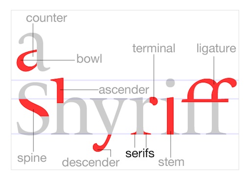 一個在線學習字體的最好網站是——I Love Typography,一個描述漂亮字體的博客。這是一張來自我愛字體博客上的圖片,展示一些你應該熟悉的專業術語: