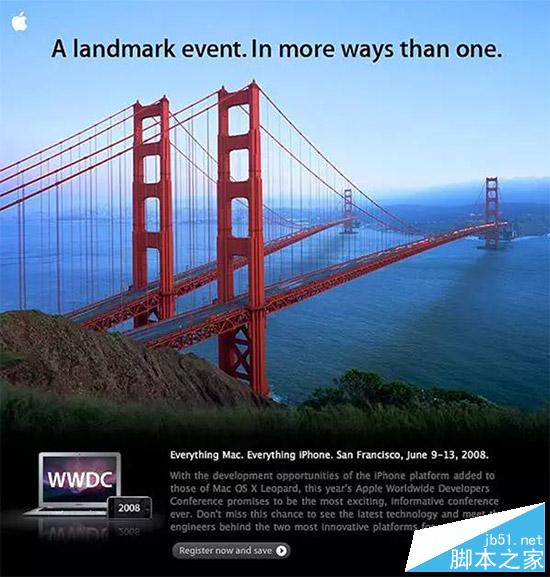 2008 年的 WWDC 的邀請函上有兩座金門大橋,結合「more ways than one」的文字說明,暗示會有不止一個重大新品,隨后蘋果發(fā)布了支持 3G 網(wǎng)絡的 iPhone 3G 和具有里程碑意義的 App Store 應用商店。