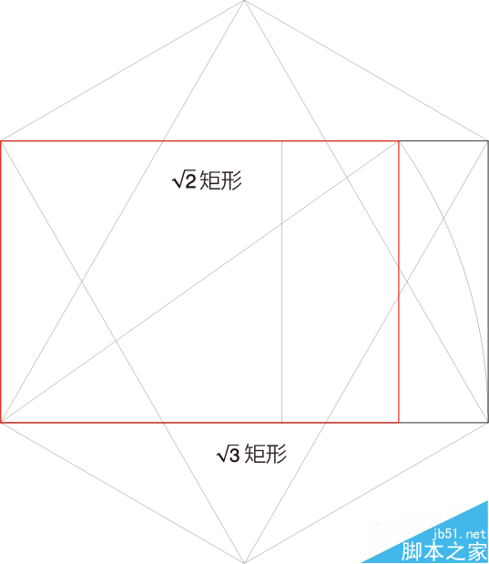 除了√2矩形以外,由其衍生出來的√3、√4、√5矩形也同樣具備可以被橫向和縱向切割的屬性。√3矩形也是正六邊形的構成基礎,這個形狀也可以在自然界中的很多方面找到,例如雪花晶體與蜂巢的形狀。