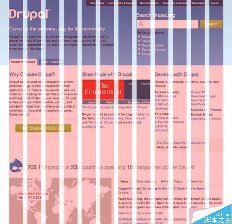 橫向則依據你所使用的最小字符高度而定,一般使用12pt—16pt的文字,每行60—80字符是比較合理的范圍。這樣,我們就得到了一張理性,簡單,有效的網格,使用網格設計可使網頁的連貫性與秩序性增強,內容與內容不會相互影響,減少內容取舍的復雜度,并且很大程度上增加網站代碼的復用率。