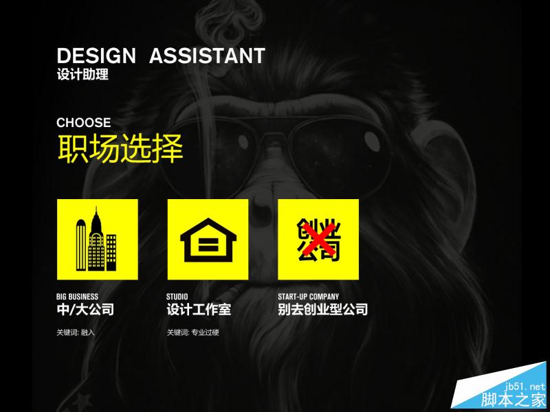 在職場選擇方面,大公司當然是首選(前提你能通過錄?。绻M步了大公司,也不要著急,可以到一些設計能力牛逼的小設計工作室去鍛煉,廣告公司啊什么的。 千萬不要去創業型公司,因為那里時間就是金錢,你幫不了多大的忙就不要去耽誤別人的事。而且一般創業公司也不太喜歡請愣毛青。