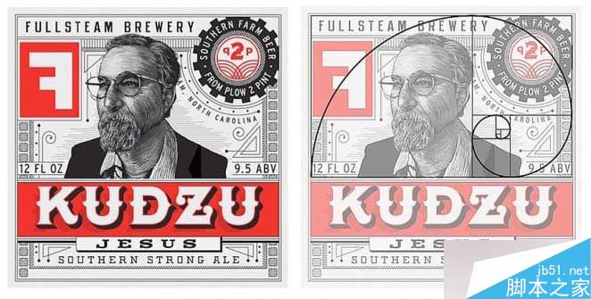 Helms 工作室 為Fullsteam 啤酒進行品牌設計的時候,也同樣借助黃金螺旋來布局內(nèi)容。