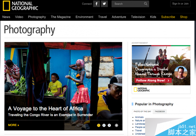 這種兩欄式布局在網(wǎng)頁上非常實用,我們所熟知的美國國家地理的網(wǎng)頁就是使用的這樣的布局方式,看起來可讀性非常不錯,比例平衡,符合網(wǎng)站內(nèi)容自然的特性。