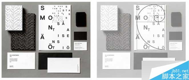 Saastamoisen säätiö 的這個視覺設計稿就更典型了。圖中的字母分布看起來亂中有序,它們就是沿著黃金螺旋來分布的,并且隨著螺旋半徑的縮小而逐漸縮減字體尺寸,并且提升字母的密度。這樣的設計保證了視覺的平衡,富有設計感而不混亂。