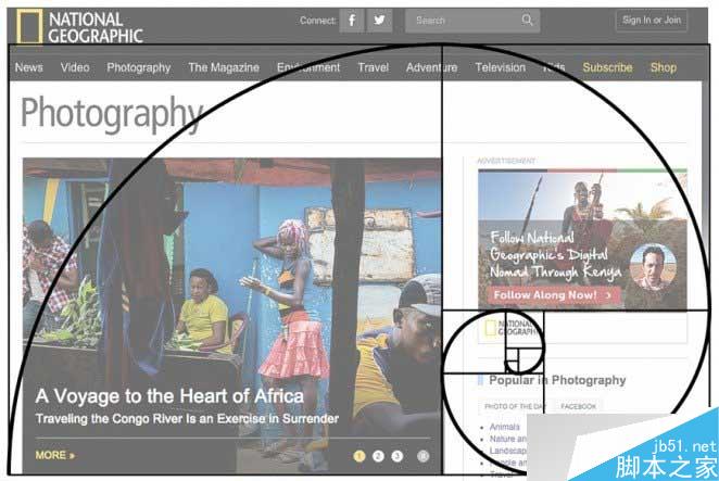 對于網(wǎng)頁內(nèi)容而言,黃金螺旋的軌跡同樣可以起到重要的作用。我們的視覺可以很自然地沿著黃金螺旋的軌跡運動,這也就是說這樣設計網(wǎng)頁布局會讓訪客更加自然地瀏覽內(nèi)容。