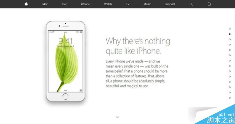 網站的輪播圖并不是什么新鮮的東西,但是如果將它擴展到整個屏幕,就會形成類似幻燈片一樣的頁面。每個占據整個屏幕的幻燈片可以承載不同的內容,不一樣的設計,可以制作成滾動式的頁面,也可以加入延時動效。用戶可以左右滑動切換幻燈片,這是一種接近物理現(xiàn)實的交互體驗。和許多設計趨勢一樣,這樣的網頁設計更加簡約、直覺。