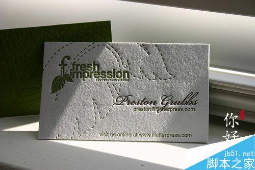 有色壓凹又叫letterpress,就是凸版活字印刷。Letterpress出來的名片極富藝術氣質并且工藝精良,讓人愛不釋手。