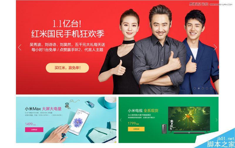 小米網站banner基于設計規范和自營產品的電商設計網站。減去了設計中過于熱鬧、喜慶、大促的風格。產品展示圖中都是用帶有明暗漸變的背景來突出產品。這種背景的處理方法更容易出圖產品,整體畫面整潔,無過多的視覺干擾。也具有較強的品質感。
