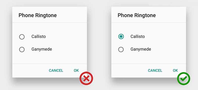 當我們設計單選框時,遵循設計標準很重要,因為這會培養用戶預知一個控件會起到什么作用、并且如何操作的能力。相反,違反設計標準會影響用戶界面的可信度--好比如果沒有警示信息,任何可怕的事都會發生。