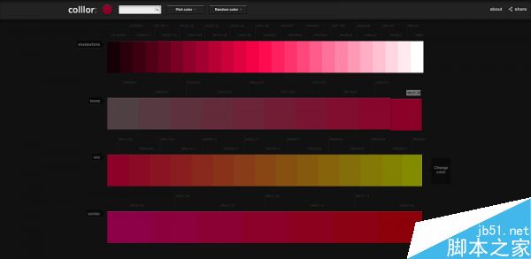 如果你想得到一個關于美麗色彩的調色板,你真應該試試這個。你甚至可以在其中輸入你自己的顏色,你可以保留你喜歡的顏色,改變其中的一種或者幾種等等。