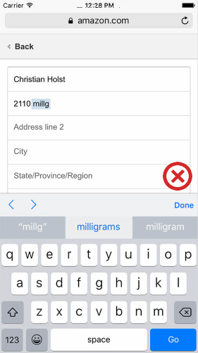 在老版本的亞馬遜 app 中,地址欄曾經有自動糾錯功能,卻導致了正確地址被這個功能改寫為錯誤的。