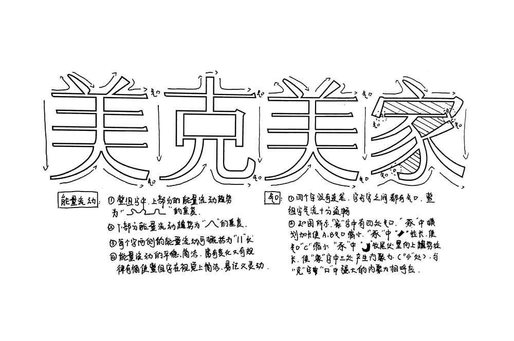-美克美家標(biāo)志是微軟雅黑與宋體的結(jié)合,既有等線體的現(xiàn)代、莊重感又有宋體的雅致、大氣。是一款難得的標(biāo)準(zhǔn)字體。宋體的裝飾角加上雅黑的弧度,顯得莊重而且又有很強(qiáng)的識(shí)別性。結(jié)合兩種字體的特點(diǎn)組合新的一款字體是一種常見而且實(shí)用的造字方法,例如,楷體與宋體的結(jié)合,字研所將會(huì)在以后進(jìn)行分析……