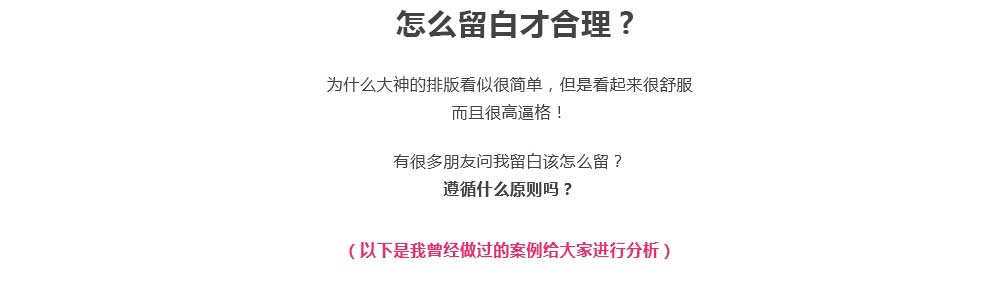 簡約,何謂簡約?百度詞條——簡約是指節儉;簡省。那么作為一種設計風格,簡約設計其實就是合理的留白,合理的構圖。用盡可能少的元素來傳達出我們所要傳達出來的內容。為什么大神的排版看似很簡單,但是看起來卻很舒服,而且逼格很高?該怎么留白,有什么原則嗎?有什么套路嗎。。。。。如果您也有類似的問題那么一起來學習這篇文章吧!