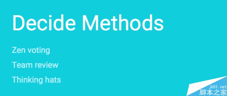 前面發散部分是團隊中每個人單獨想自己的idea,互不溝通。發散環節之后,所有團隊有幾個成員就會有幾個idea。那么接下來怎么定用哪個方案呢?可以通過以下方法:投票,團隊評價,以及思考帽子法。