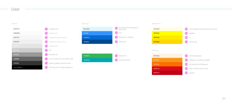 這是我們與工程師的“約定”,俗稱Guideline。我們?cè)贕uideline中制定了一系列代號(hào),它是由字母加數(shù)字組成,用來代替各色值、字號(hào)、控件等,工程師依照我們的代號(hào)在庫中設(shè)置好,這樣在工作中就不用每一次敲入長長的色號(hào)、字大小、控件等,只要輸入代號(hào)就好,如這里的C是Color,S是Size的縮寫。