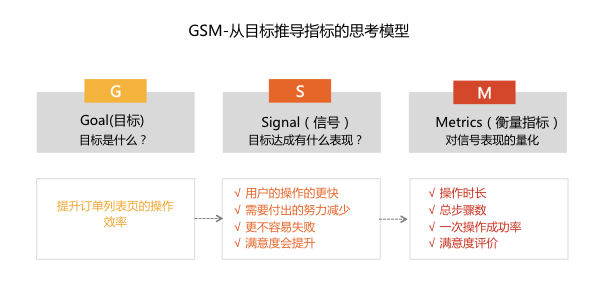 當確定了比較宏觀的目標后,還需要找到能量化、細化目標的指標,這個推導的思路可以借鑒Google的GSM模型