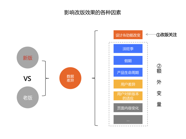 如果對改版效果的精準性沒有那么高的要求,一般主要注意取數時避開淡旺季、假期,等新版本上線一段時間再分析即可,如果條件允許,盡量使用A/B測試的同時對比方法。
