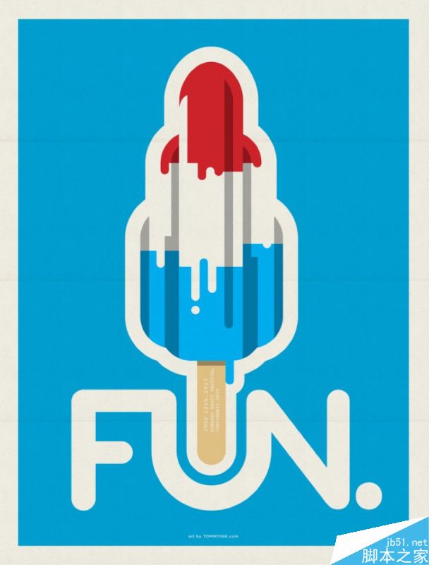 Fun獨立樂隊致力于創作有趣的音樂作品。來自TOMMYINK的設計師Tommy Sheehan分別依據三位隊員的性格特點設計了這則激勵人心、叛逆又極具個性的海報。海報的主題插畫為經典的火箭外形,搭配極具代表性的紅白藍國旗色,同時整個造型也用來暗指豎中指的手勢,表達了一種反叛的諷刺精神。