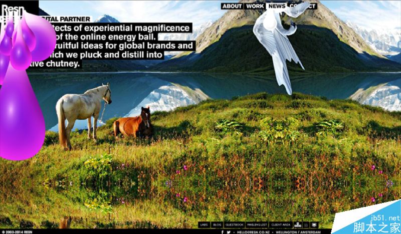 新西蘭Resn工作室的網站設計也起到了過濾觀眾的作用。這款設計極具特色,從圖片到文字都給人一種前所未有的體驗。實際上他們設計過很多符合大眾常規審美的優秀作品,但是對于他們自己的網站和團隊設計,他們總是突破常規,全然不在乎外界的看法。